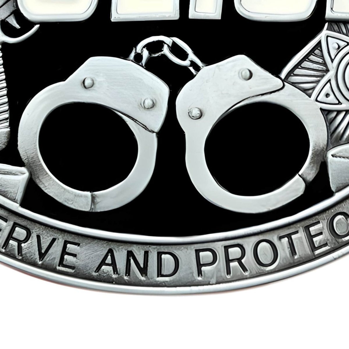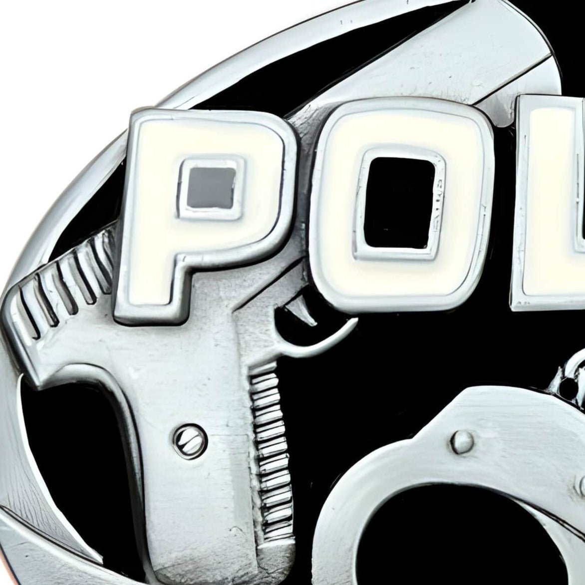 More than just an accessory, this belt buckle is a badge of honour for those dedicated to protecting others. Its sleek design and striking contrast against the black background mirror the clear mission of the police force and their unwavering integrity. It is the perfect choice for those who proudly uphold the values of courage and service within the community.