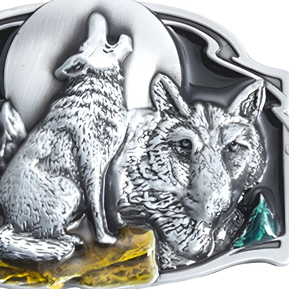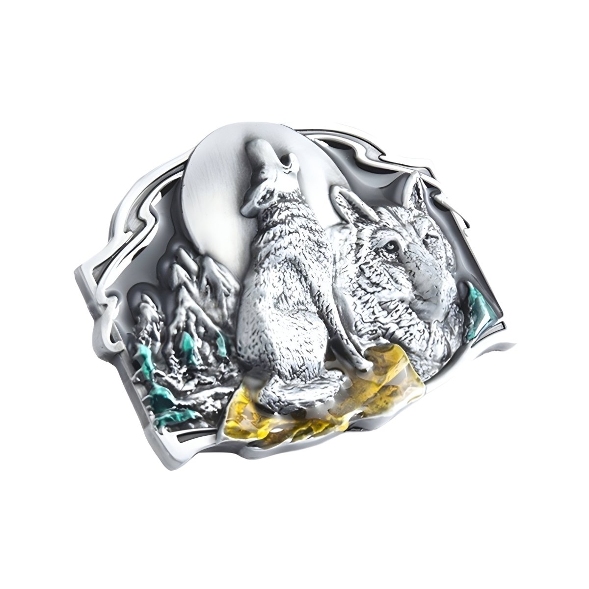 This belt buckle, capturing a pack of wolves in harmony under a waxing moon, is an artistic celebration of brotherhood, wilderness and the ancestral bonds that unite us.