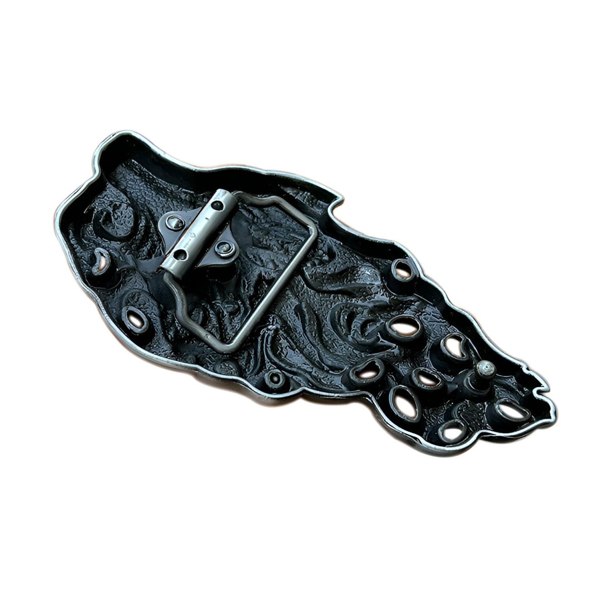 Embrace the essence of the wild and untamed spirit with this belt buckle that features the head of a wolf rising from flames. The craftsmanship of metallurgy is showcased, creating a striking relief where every detail—from the fierce fur to the intense expression—is captured with astonishing realism. Wear the quiet strength and determination symbolized by this mythical creature, embodying both mystery and freedom.