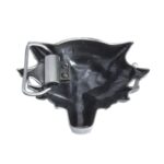 Unleash the spirit of the wild within you with this belt buckle that captures the raw and untamed essence of the wolf. Carved with precision that highlights every detail, this piece is a silent call for freedom, a symbol of inner strength and primal instinct. It is the perfect accessory for those who respect the power of nature and embrace their wild heritage.