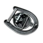 Celebrating the equestrian spirit, this belt buckle stands out as a modern symbol of timeless elegance. At its heart, a horse head motif, captured with sculptural fidelity, is beautifully framed by a horseshoe, evoking luck and tradition. Wear a piece of equestrian nobility that blends seamlessly with a contemporary aesthetic. This piece is perfect for those looking to infuse their wardrobe with a touch of bold character and distinction.