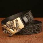 In a stylistic tour de force, this animal spirit belt with a dragon pattern merges the boldness of myth with the sophistication of modernity. The dragon, an emblematic creature of strength and wisdom, adorns the buckle, infusing the piece with legendary vitality. The intricate engraving surrounding it harks back to ancient traditions of craftsmanship, making each piece uniquely collectible for the contemporary aesthete.