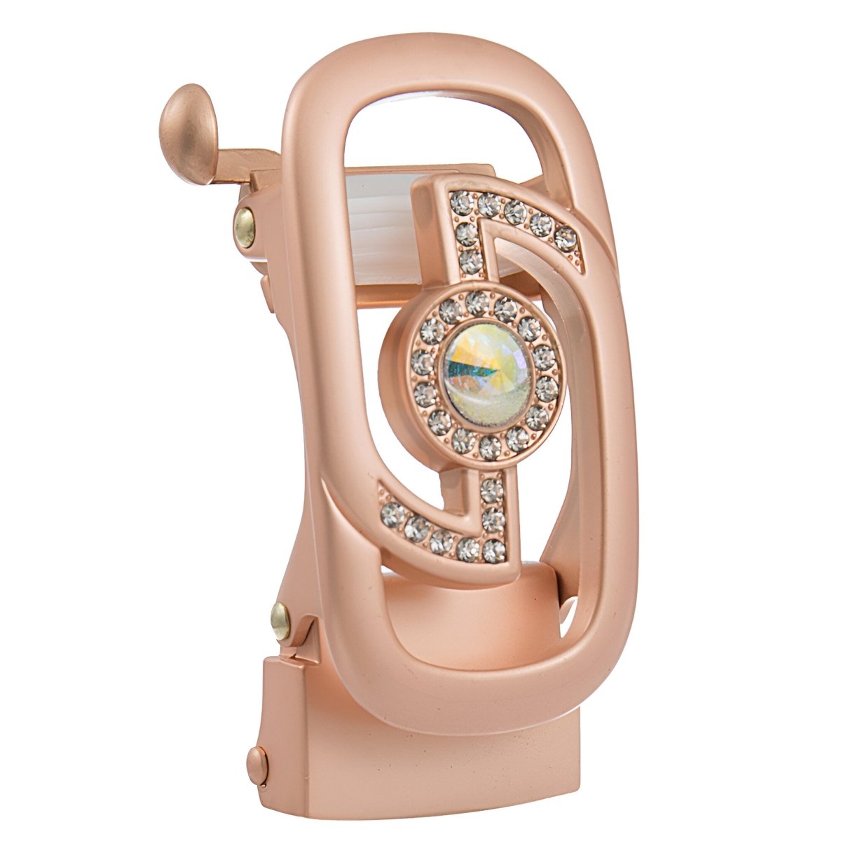 In a seamless blend of functionality and aesthetics, this automatic ratchet belt for women stands out with a bold geometric design, enhanced by sparkling rhinestones that catch and refract light. The centerpiece, adorned with a standout gem, offers a captivating shine, giving it a modern and dynamic edge. This accessory is designed for those who appreciate unique pieces that combine innovation and elegance.