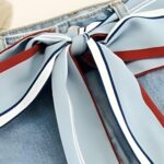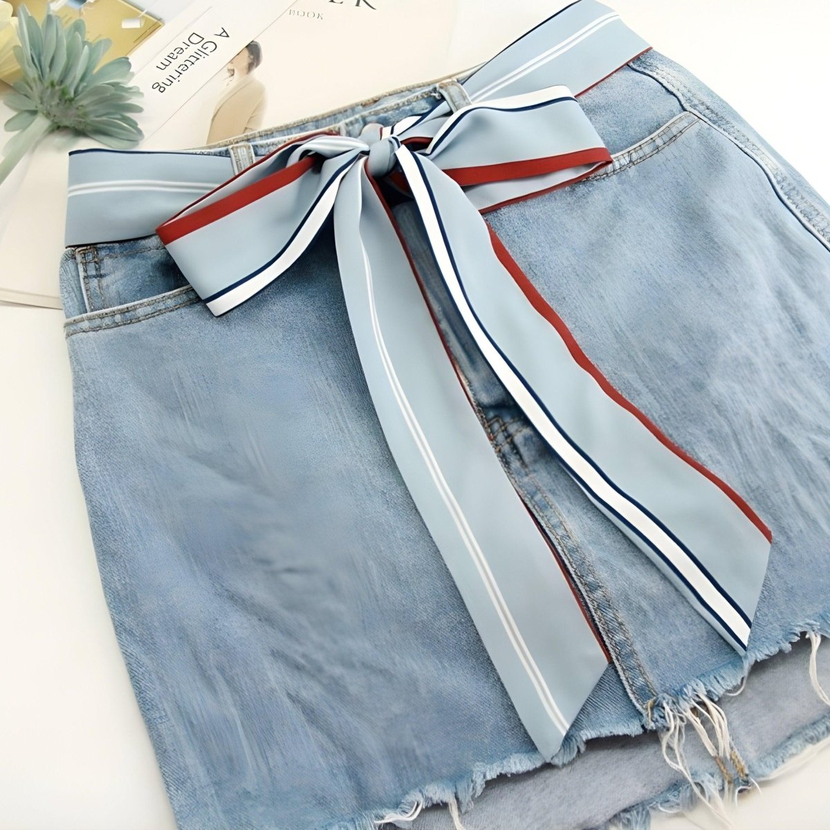 Evoking the freshness of the tides and the free spirit of sailboats under the open sky, this sky blue scarf belt is a tribute to freedom. The bold scarlet stripes inject a vigor reminiscent of sails in the wind, a call to adventure on the fashion seas. It symbolizes effortless elegance, worn naturally and distinguished by its casual grace.