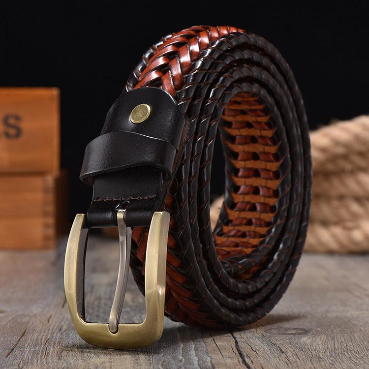 Express yourself beyond words with the Nikoloz belt. Designed to transcend convention, every detail of this piece embodies natural elegance and exceptional craftsmanship. Crafted from impeccable cowhide leather, its braided strap blends seamlessly in shades of brown, coffee, and black. This intricate design offers the wearer a bold look while accentuating their unique personality. Perfect with casual trousers for an evening with friends or dress pants for a professional event, it consistently adds the perfect finishing touch.