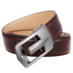 The highlight of this belt is undoubtedly its silver automatic buckle. Its rectangular design, both robust and sleek, stands out with a subtly decorated pattern, lending a strong visual signature to the accessory. It reflects a keen attention to detail and a distinguished presence when worn. This accessory is not just an everyday item, it is a true statement of personality and confidence for the wearer.