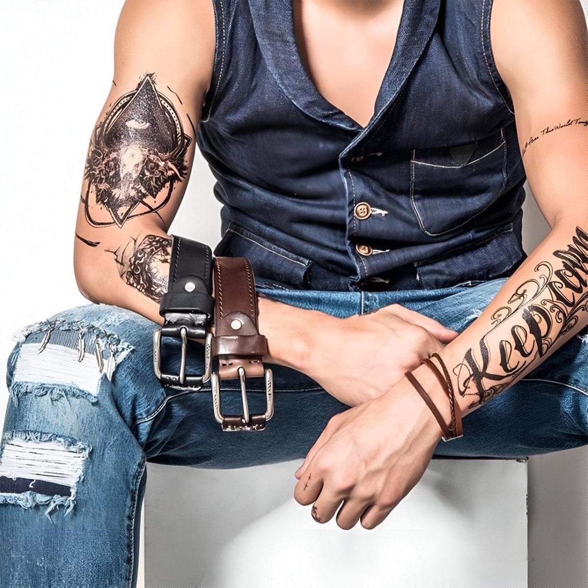 At the heart of men's fashion lies the desire to express effortless individuality. The Thocero belt embodies this aspiration. Crafted from the finest full-grain leather, it brings forth the aura of a bygone era while providing modern comfort and durability. Its distressed look adds authenticity to every pair of jeans or casual trousers it is paired with. The attention to detail is apparent in the subtly embossed strap, enhancing your style dimension.