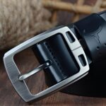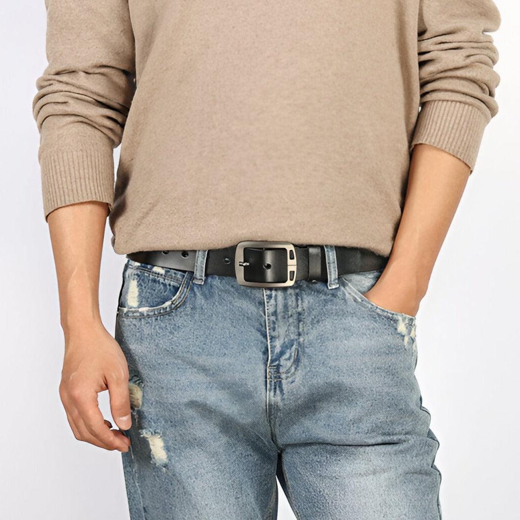 The Yuriy belt transcends its role as a mere accessory to become a cornerstone of your wardrobe. The rectangular, silver-coloured metallic alloy buckle is not only functional but also incredibly stylish. What truly sets this belt apart is its broad bullhead loop, a detail that exudes confident masculinity and adds a touch of uniqueness to your outfit. The dimensions of the buckle, 7.0 cm in length and 5.0 cm in height, are meticulously calibrated to create a visual impact without being overpowering. In summary, the Yuriy model is the ideal accessory for those looking to express their individuality while adhering to a classic aesthetic.
