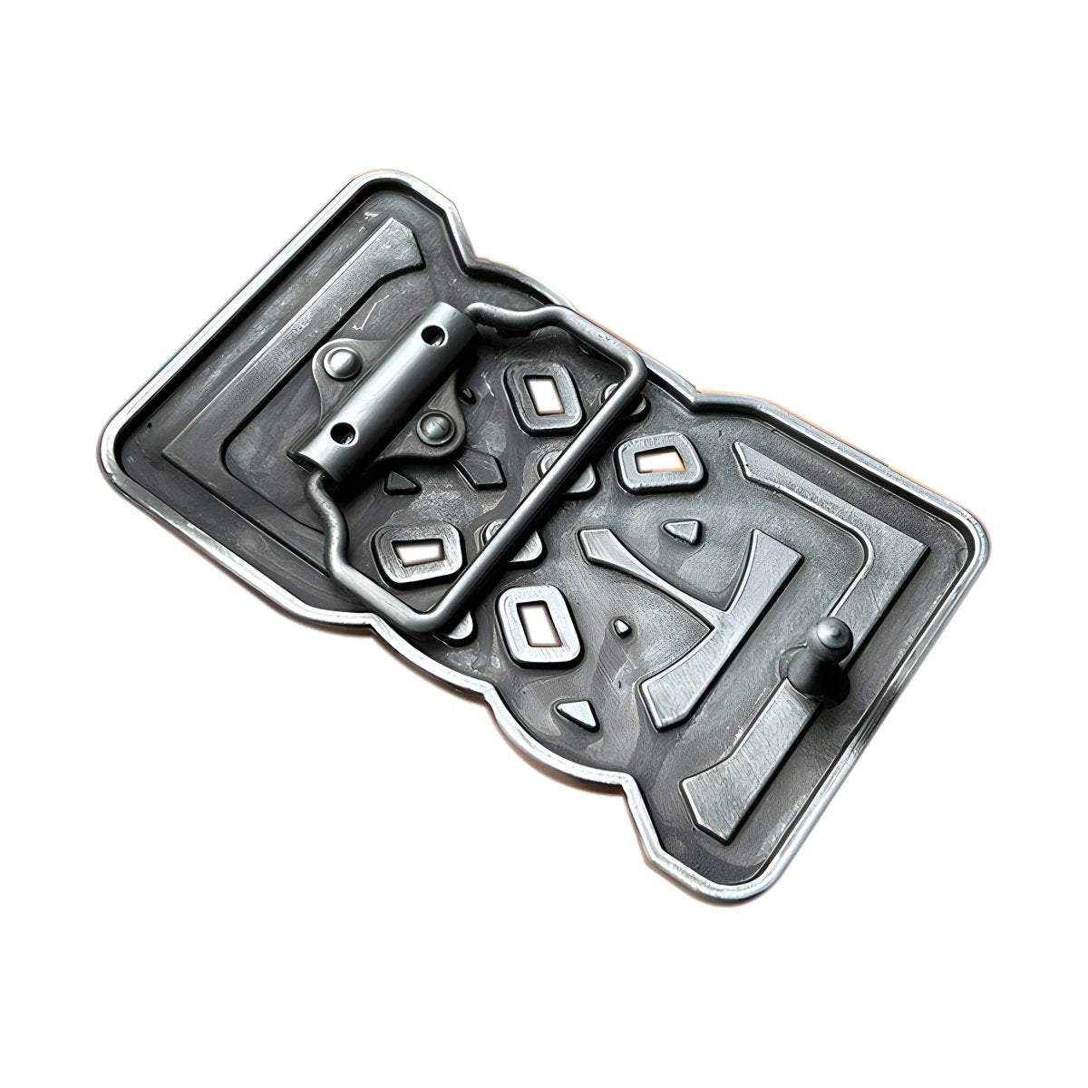 The unique allure of this belt buckle makes a bold style statement, designed for those who stand out with ease. The interplay of light on the brushed metal highlights a strong personality and a flawless attention to detail. Its geometric shape ensures your belt is perfectly poised, offering both functionality and aesthetic appeal. This accessory is not just an addition to your wardrobe; it is a centrepiece that narrates a tale of resilience and authenticity.