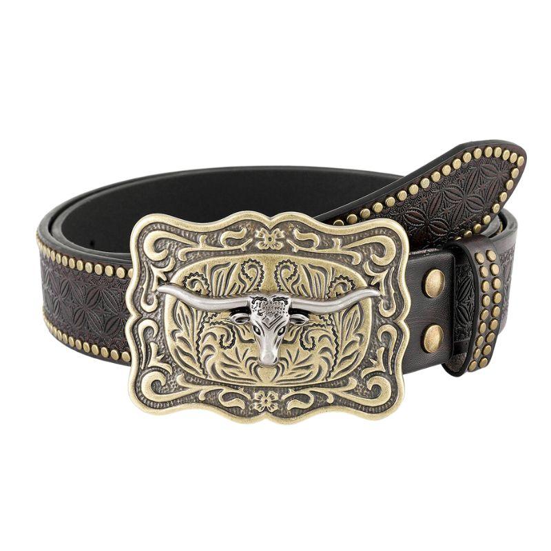 Cowboy Belt with Bull Buckle for Men, Dathan Model