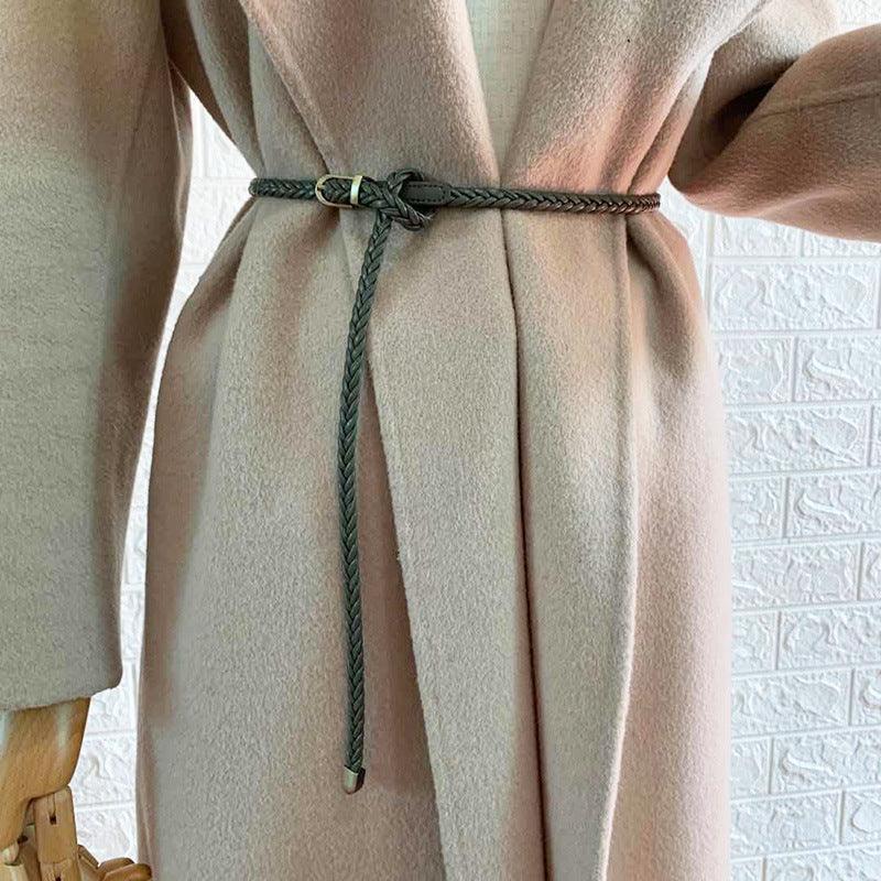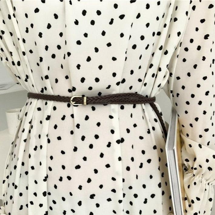 The Alfia belt epitomises subtle beauty in its purest form. Crafted from vegan faux leather, its braided texture stands as a symbol of art and elegance. Its slender width of 0.8 cm is designed to blend seamlessly, while adding that desired touch of refinement to any outfit. Whether paired with a structured coat, a breezy summer dress, or a chic jumpsuit, the Alfia adapts to every occasion, making each moment a fashion statement.