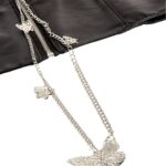 Cette ceinture corset en cuir embelli de chaînes à motifs papillons est un accessoire de mode qui conjugue audacieusement structure classique et éléments ludiques pour une élégance moderne et un style distinctif.