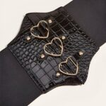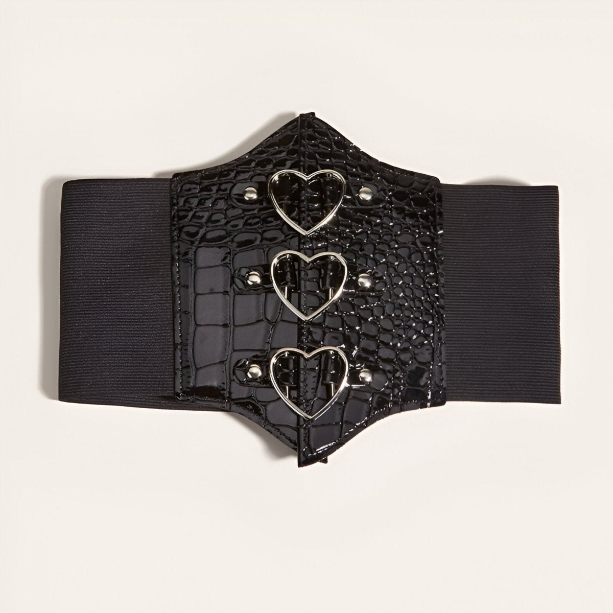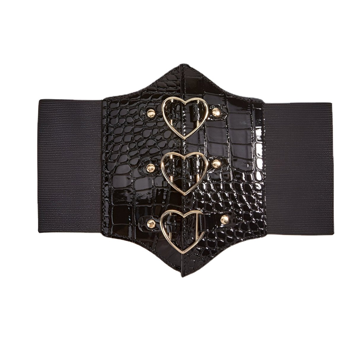 The Athena corset belt is a model we adore, both practical and stunning. Embellished with a Velcro buckle, in Golden color, shaped like a Heart, with a Heart pattern, this women's belt made from Vegan Leather and Stretch Fabric will enhance your finest outfits and is perfect for both day and evening wear.
