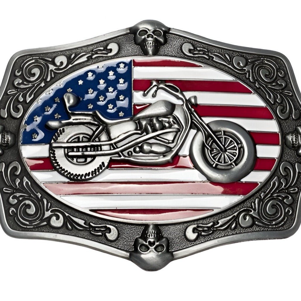 This piece is more than just a belt buckle; it's a declaration of independence and courage epitomised by biker culture. The iconic pairing of the motorcycle and the American flag narrates a story woven into the very fabric of national identity, celebrating the freedom and bravery that form the pulsating heart of the motorcycle fraternity.
