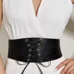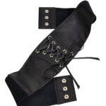 The allure of the Elowen corset belt is further enhanced by its lace-up buckle, offering precise adjustment and a bold visual aesthetic. The generous 7.5 cm width of the strap creates a modern corset-belt effect that boldly and elegantly redefines the waistline. Whether for a special occasion or to elevate an everyday outfit, it adapitates seamlessly to various settings, adding a dynamic touch to your wardrobe. This belt is a true fashion statement that celebrates individuality and personal expression through the perfect accessory.