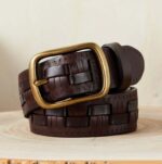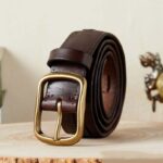 The solid brass buckle, with its rounded shape and golden hue, is a hallmark of this belt, blending functionality and aesthetics. It measures 6.0 cm in length and 5.0 cm in height, dimensions meticulously selected to ensure a secure grip and perfect fit. The meticulous leatherwork and simple stitching highlight the attention to detail and quality craftsmanship. By choosing the Culni belt, you are opting for an accessory that combines elegance and durability, essential for the modern man who values vintage style and long-lasting pieces.
