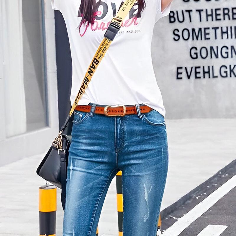 This exquisite leather gem, adorned with a polished metal buckle, epitomizes sublime elegance. It adds a sparkling touch to any outfit, ensuring a look that is both meticulous and distinctive. This belt is the accessory that speaks of you, your appreciation for beauty, and your pursuit of excellence.