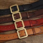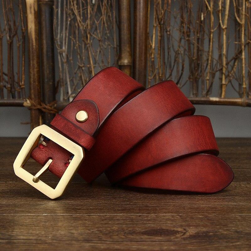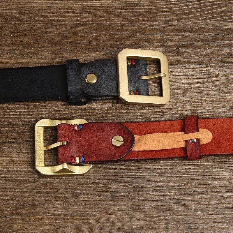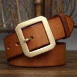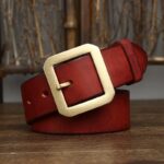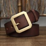 Crafted from full-grain leather, measuring 3.8 cm in width and 4 mm in thickness, this belt boasts a smooth finish and a feel of superior quality. Its square buckle, made from solid brass with a golden finish, adds a subtle elegance to this exceptional accessory.