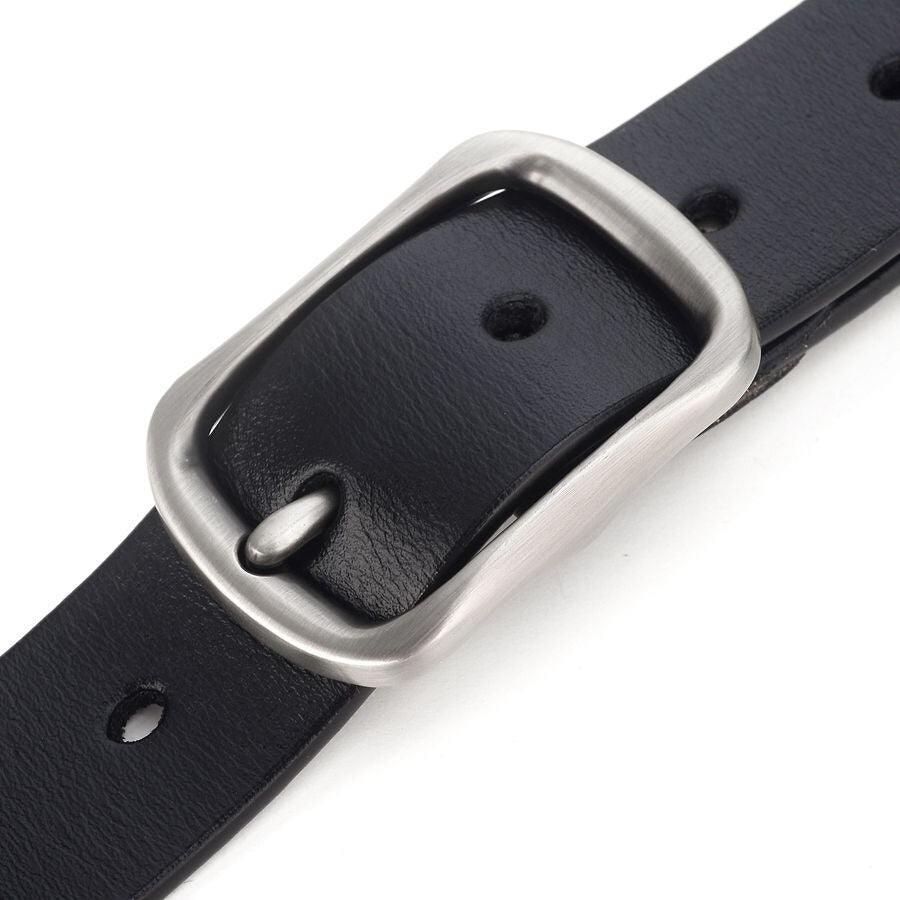 The allure of the Meri doesn't end with its strap. Its pin buckle, crafted from a silver metallic alloy, epitomises a seamless blend of tradition and modernity. With its rounded shape, it introduces a touch of softness to the overall design, making this belt not only beautiful to behold but also comfortable to wear. Whether paired with jeans for a casual outing or with a more formal ensemble, the Meri belt guarantees flawless elegance and standout presence.