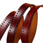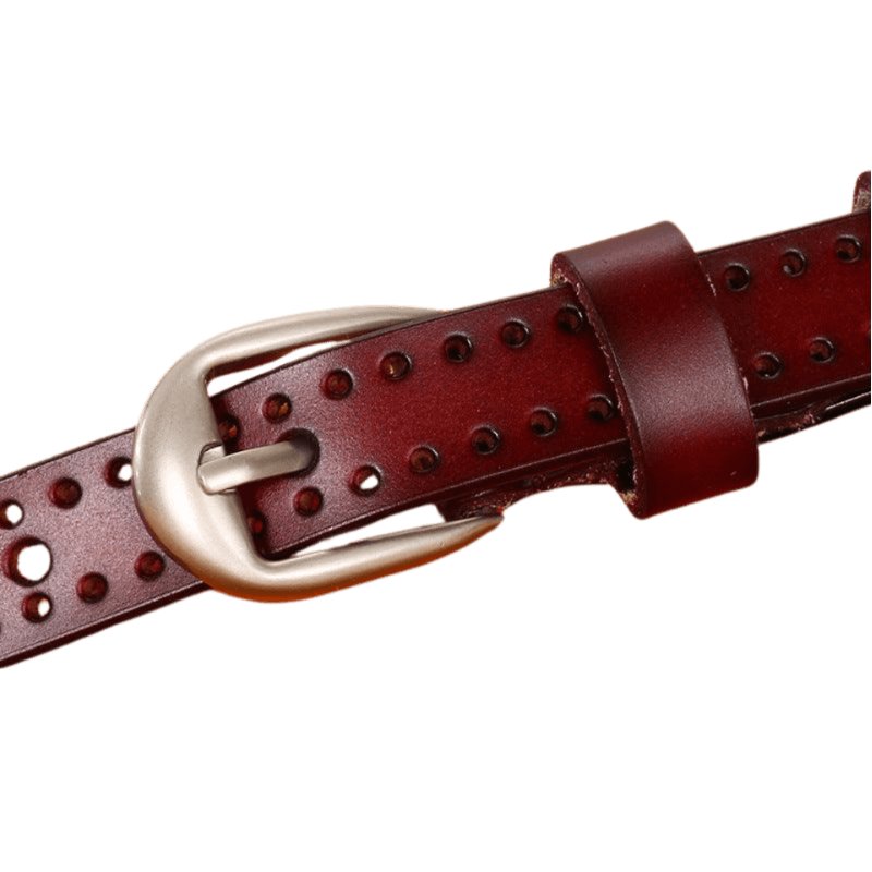 Explore the Nerinai belt, the quintessential embodiment of boho-chic style for those looking to express their uniqueness. Crafted from premium cowhide leather, it pairs seamlessly with a variety of outfits, whether it's a flowing dress, a cosy cardigan, or a daring jumpsuit. Its perforated strap, adorned with delicate cut-outs along its length, offers unmatched elegance and lightness, adding a subtle touch of whimsy to your ensemble.