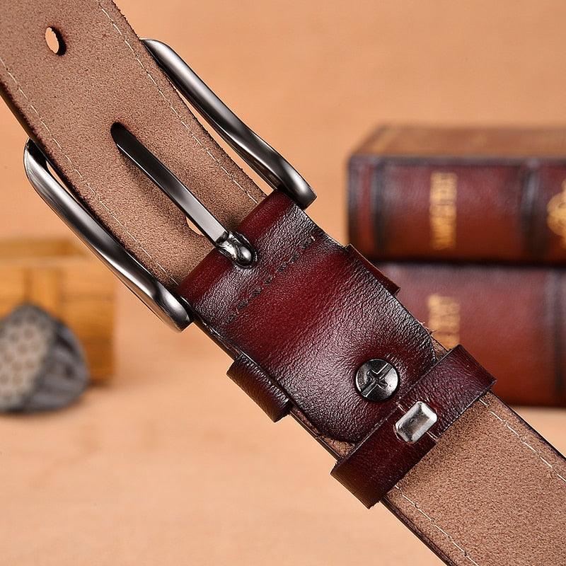 The brushed appearance of the silver buckle provides a flawless finish, complementing the beauty of this belt. Its generous dimensions (4.8 cm in length and 3.8 cm in height) make it particularly noticeable, drawing attention to this jewel that will become the centrepiece of your outfits, whether paired with jeans, dress trousers, or shorts.