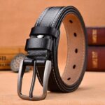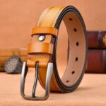This belt does not compromise on comfort or style. Its rectangular prong buckle is both functional and fashionable, providing a perfect fit around your waist. The metal alloy of the buckle, combined with the smooth finish of the leather, creates a perfect harmony that will enhance any ensemble.