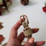 Beautifully finished with two golden metal pieces framing the buckle.