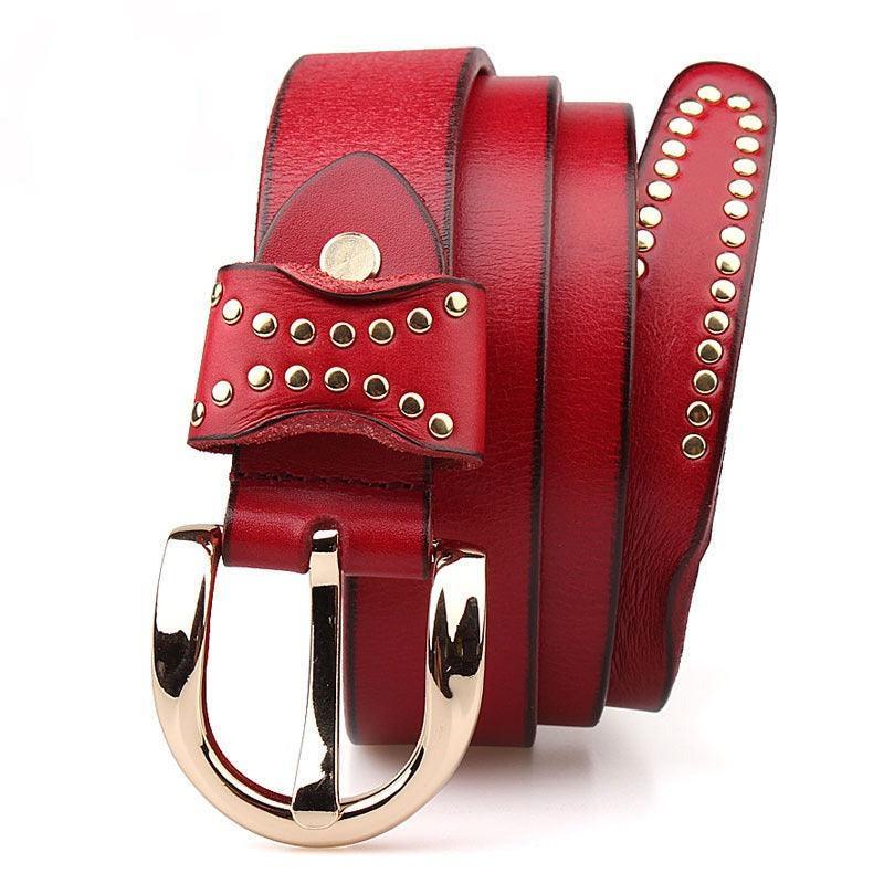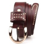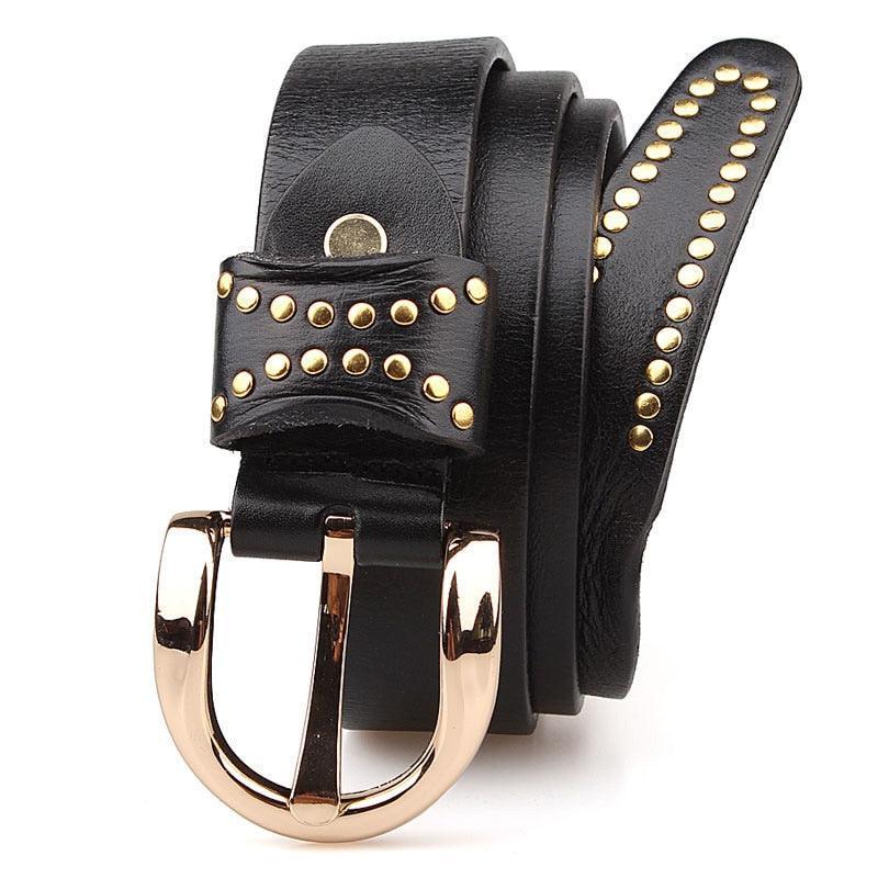 Envision an accessory that embodies the glow of urban elegance and the steadfastness of quality craftsmanship. Our Tutna model belt is a testament to this vision, where every detail matters. The meticulous finish with shining golden rivets adds an uncompromising touch of luxury, perfectly complementing the polished buckle for a captivating sheen. The strap, crafted from premium-grade split leather, offers strength and durability that withstands the test of time. Designed for everyday dynamism, this belt seamlessly integrates with your wardrobe, whether paired with form-fitting jeans, tailored trousers, or casual summer shorts.