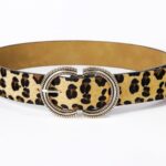 Experience the epitome of contemporary elegance with the Agu belt for women, a cornerstone piece that transforms the modern wardrobe. At a width of 3.8 cm, this belt is crafted from faux vegan leather, making it an ethical choice for fashion enthusiasts. The rich texture and bold leopard print add a striking visual dimension to any outfit, while the twisted gold-tone metal buckle serves as the hallmark of a sophisticated design. Whether elevating a flowing dress or completing a structured ensemble, the Agu belt promises to be an essential highlight.
