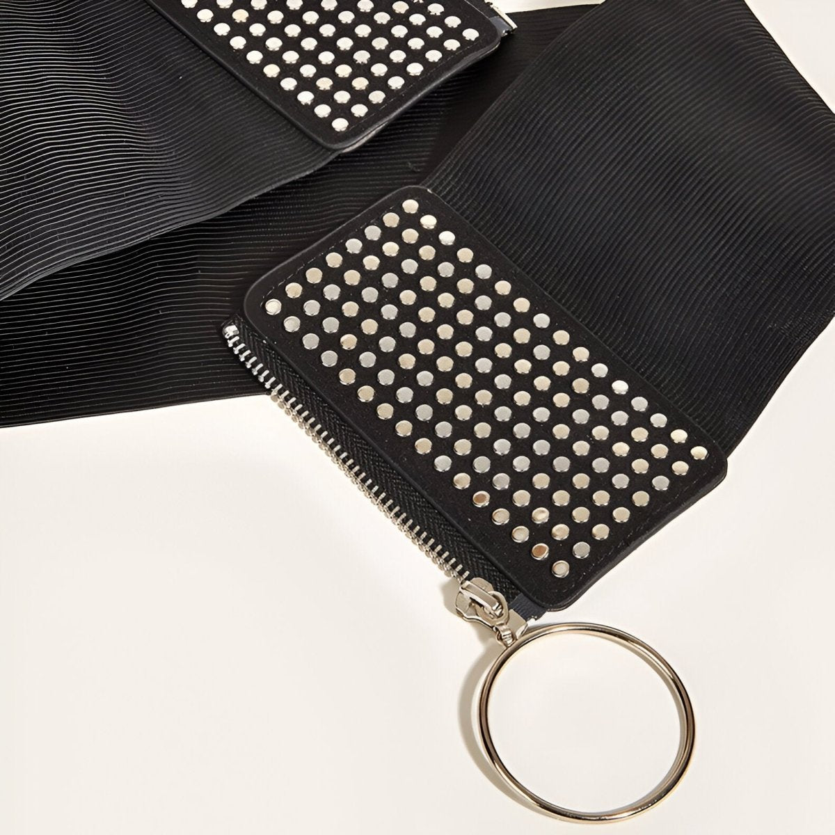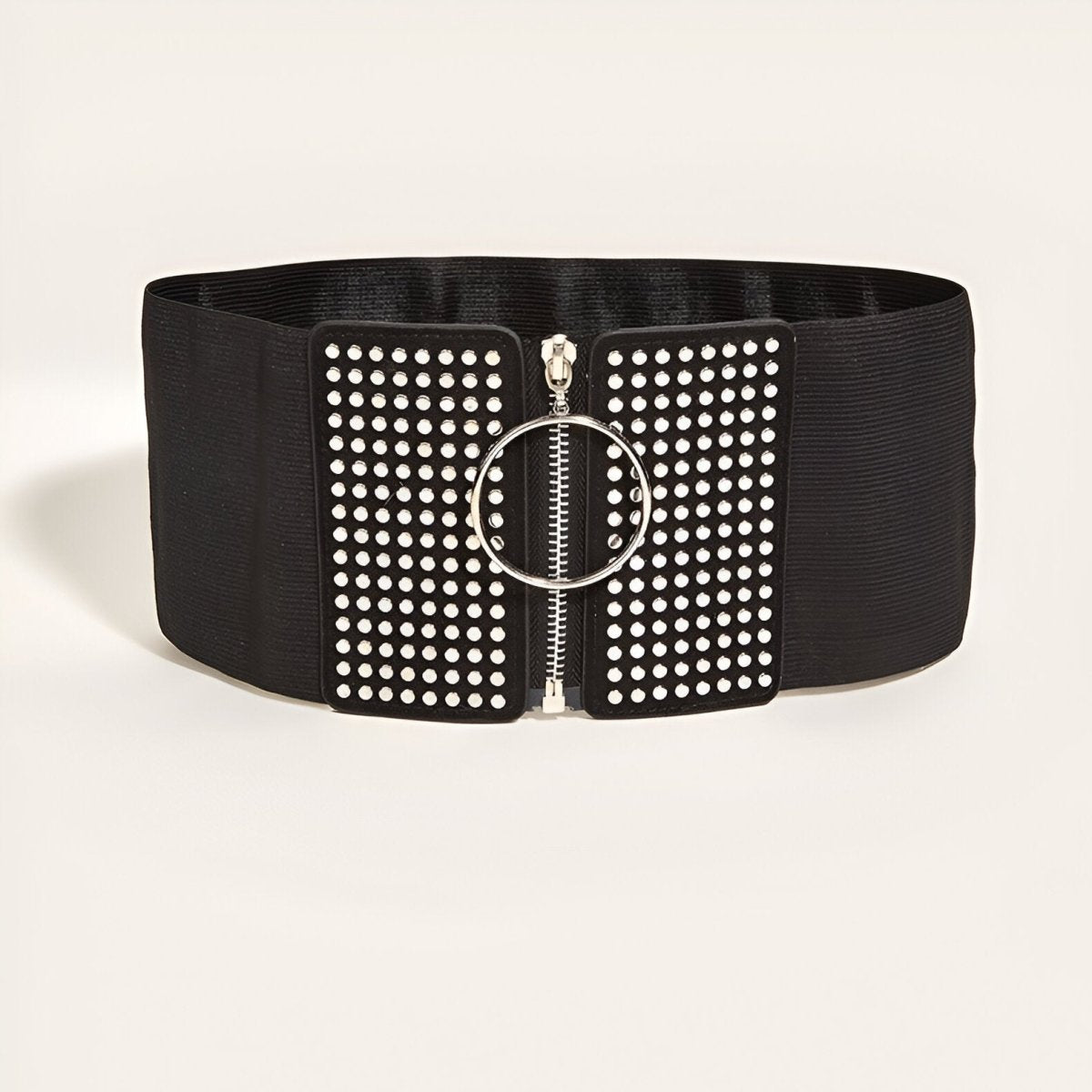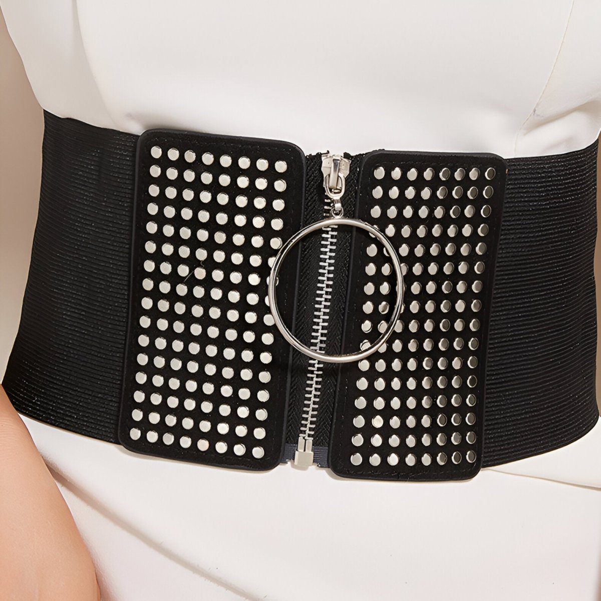 Whether it's elevating a work outfit with tailored trousers, adding definition to a flowy dress, or enhancing the elegance of a sophisticated jumpsuit, the Margaret Model Zip Corset Belt is the perfect accessory. Its sturdy and convenient zipper is not just a functional element; it serves as the focal point of the design, making a bold fashion statement. This model exudes confidence, striking a perfect balance between the comfort of the fabric and the visual impact of metallic finishes. For any woman seeking an accessory that blends aesthetic harmony with comfort, the Margaret Model becomes a staple.