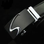 The automatic buckle of the Iona belt is a true masterpiece of design. Its rectangular shape is subtly adorned with an elegant S-shaped pattern, adding a unique flair to this exquisite accessory. Crafted from a black metallic alloy, it is not only robust but also strikingly beautiful. Its generous dimensions, 8.5 cm in length and 4.0 cm in height, enhance its distinctive character.