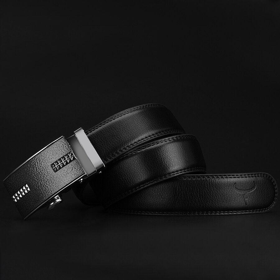 The rectangular buckle of the Zakaria belt is more than just a closure mechanism; it epitomizes meticulous craftsmanship. Adorned with a silver notched pattern, this metallic alloy gem harmoniously blends with the deep black of the belt, creating an alluring contrast. The precision of the subtly decorated motif reflects an attention to detail that is sure to dazzle and captivate onlookers. Wrap yourself in the luxury of the Zakaria belt and assert your status with confidence.