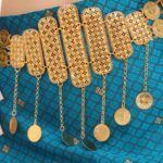 Embodying history and culture, this Moroccan belt is a harmony of shapes and sounds, an adornment that sways to the rhythm of celebrations. Adorned with medallions that shimmer with every movement, this belt is a visual symphony, reminiscent of traditional attire blending with the spicy aromas of the old medina.