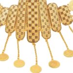 Cette ceinture marocaine est un éclat de tradition avec ses plaques dorées ajourées et ses médaillons oscillants, conjurant l'esprit des festivités ancestrales et le faste des célébrations modernes.