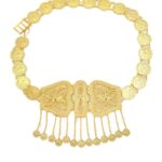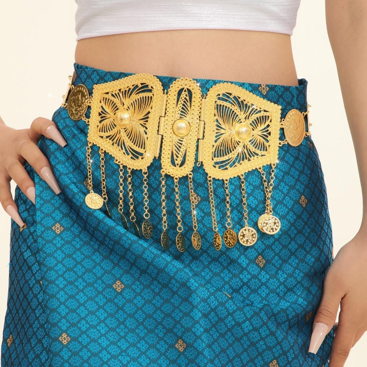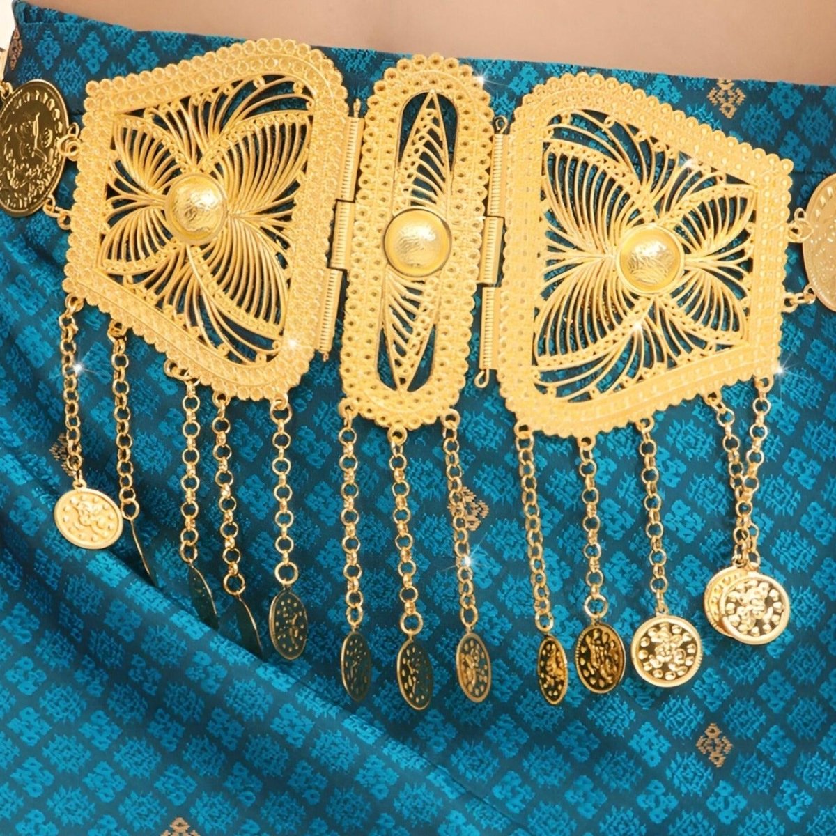 This Moroccan belt is not just an accessory, but a centrepiece that captures the essence of a rich and opulent culture. Perfect for weddings, parties, or any event where glamour is essential, it bestows upon its wearer an air of nobility and elegance. The ideal accessory to enhance the most refined silhouettes with majesty.