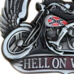 This metal piece, emblazoned with the 'HELL ON WHEELS' motto, stands as a bold statement for those who turn every ride into an epic journey. It captures the essence of riders who drive with soul, making each outing a challenge to the conventional. It's the ultimate accessory for the biker who embodies a rebellious spirit and the promise of a life lived with intensity and defiance.