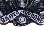 This belt buckle embodies the very essence of rebellious attitude with its bold skull, star-studded forehead, and the iconic raised "BAD TO THE BONE" inscription. Flanked by outspread wings that symbolise freedom and defiance, this piece pays tribute to the free spirits who wear their beliefs with pride. The striking design creates a characterful focal point for any outfit, asserting a presence that cannot be overlooked.