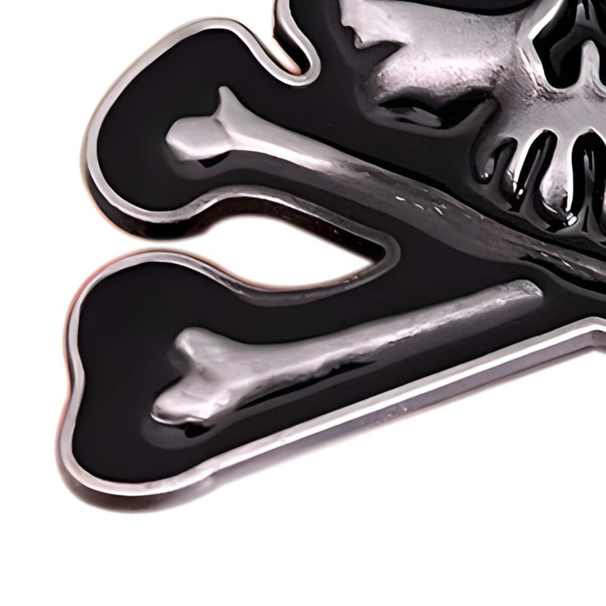 A sleek belt buckle with the classic skull and crossbones, symbolising rebellious elegance and timeless boldness.