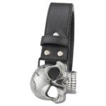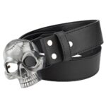 Experience the perfect blend of daring and sophistication with our leather skull belt, the ideal choice for those who wish to boldly express their style. Featuring a metallic skull-shaped buckle, it embodies a complex mix of carefree attitude and rebellious elegance. This piece is crafted to enhance a casual outfit or add a touch of audacity to a more formal attire. Its genuine leather strap, measuring 3.8 cm in width, demonstrates a commitment to quality and comfort, without compromising on distinctive style.