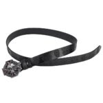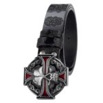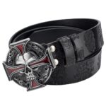 The rounded clip buckle is crafted from high-quality silver-toned metal alloy, creating a striking contrast with the strap. The skull motif embellishing the buckle is iconic of the punk style, a symbol of rebellion and individuality. Embrace the style that suits you with the Magnus model. Whether you pair it with ripped jeans and a graphic tee or layer it over a leather jacket, this skull belt is the perfect complement for those looking to stand out in the fashion world.