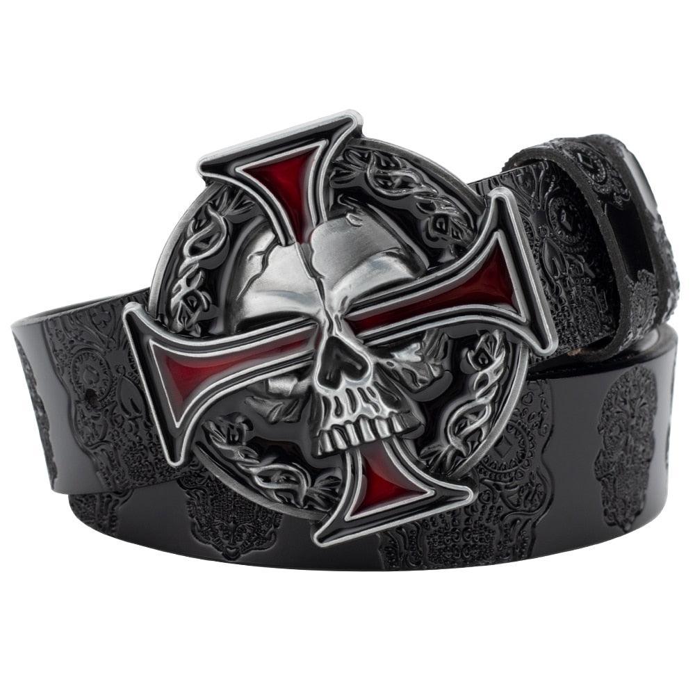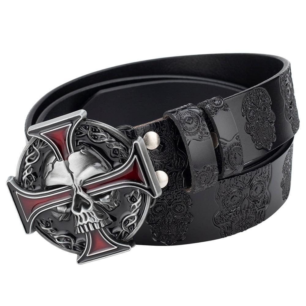 Adopt a bold style with this model's skull-textured strap and character buckle.