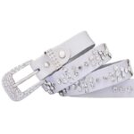 The Filauria belt is much more than a mere accessory; it's a statement of style. Its rectangular metallic alloy buckle, finished in silver, is embellished with sparkling rhinestones that add a touch of brilliance to the piece. This buckle is designed to capture attention while ensuring a perfect fit. Indeed, the Filauria model is the quintessential accessory for those looking to express their style with boldness and elegance.