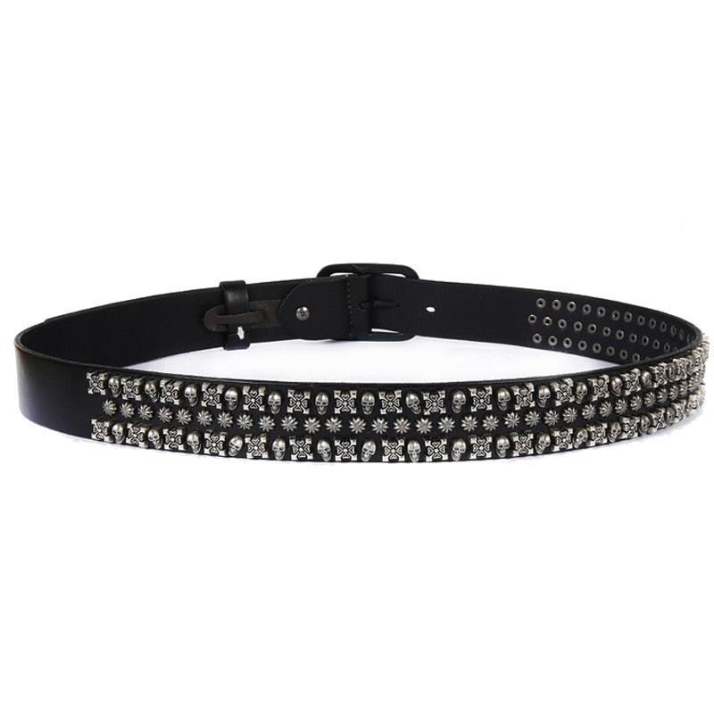 The Syllia studded belt is more than just an accessory; it's a bold statement of individuality. Designed for those who dare to stand out, it blends the timeless elegance of genuine leather with bold accents that channel a punk spirit. The embossed rivets, meticulously crafted into skull and flower shapes, add a striking visual dimension, making this belt the perfect choice to enhance a basic outfit. Crafted from cowhide leather with mineral tanning, it ensures exceptional durability and quality, guaranteeing that this piece remains a favourite in your wardrobe for years to come.