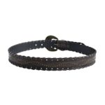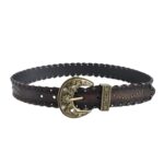 The strap is no exception when it comes to style. Adorned with golden studs along its length, it glimmers with a subtle shine, adding an extra dimension to the bold design of the accessory. This studded belt is more than just a functional item; it is a reflection of a strong preference for pieces that tell a story, embodying the spirit of conquest and independence. It is crafted for those who wish to make a bold style statement without uttering a single word.