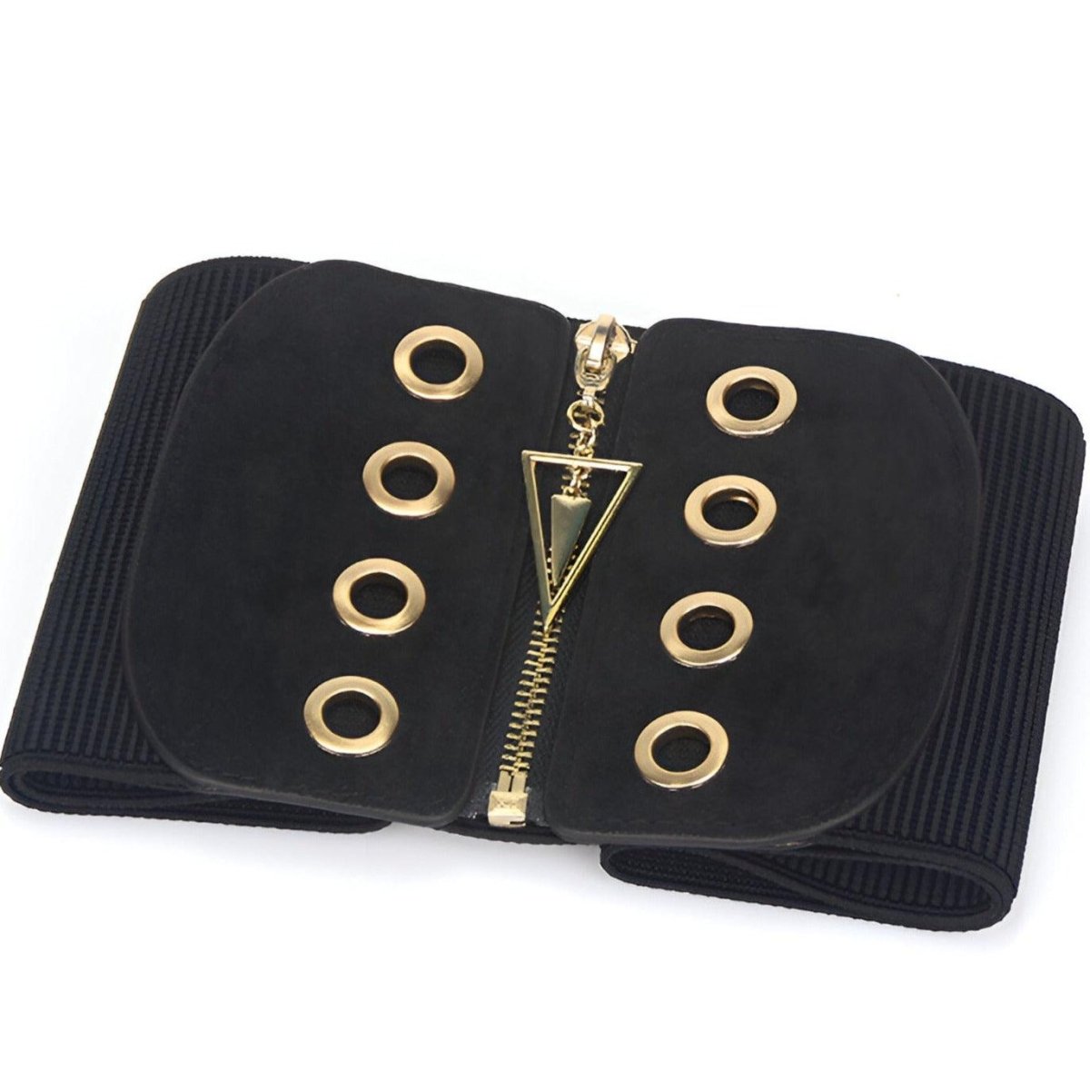 This corset belt epitomizes a modern twist on tradition, where every detail is crafted to captivate. The oversized eyelets create a striking visual impact, and the pendant adds a unique focal point, elevating the piece to a fashion statement with presence. It embodies a bold style, perfect for enhancing both day and evening outfits, and for adding a touch of mastered originality.