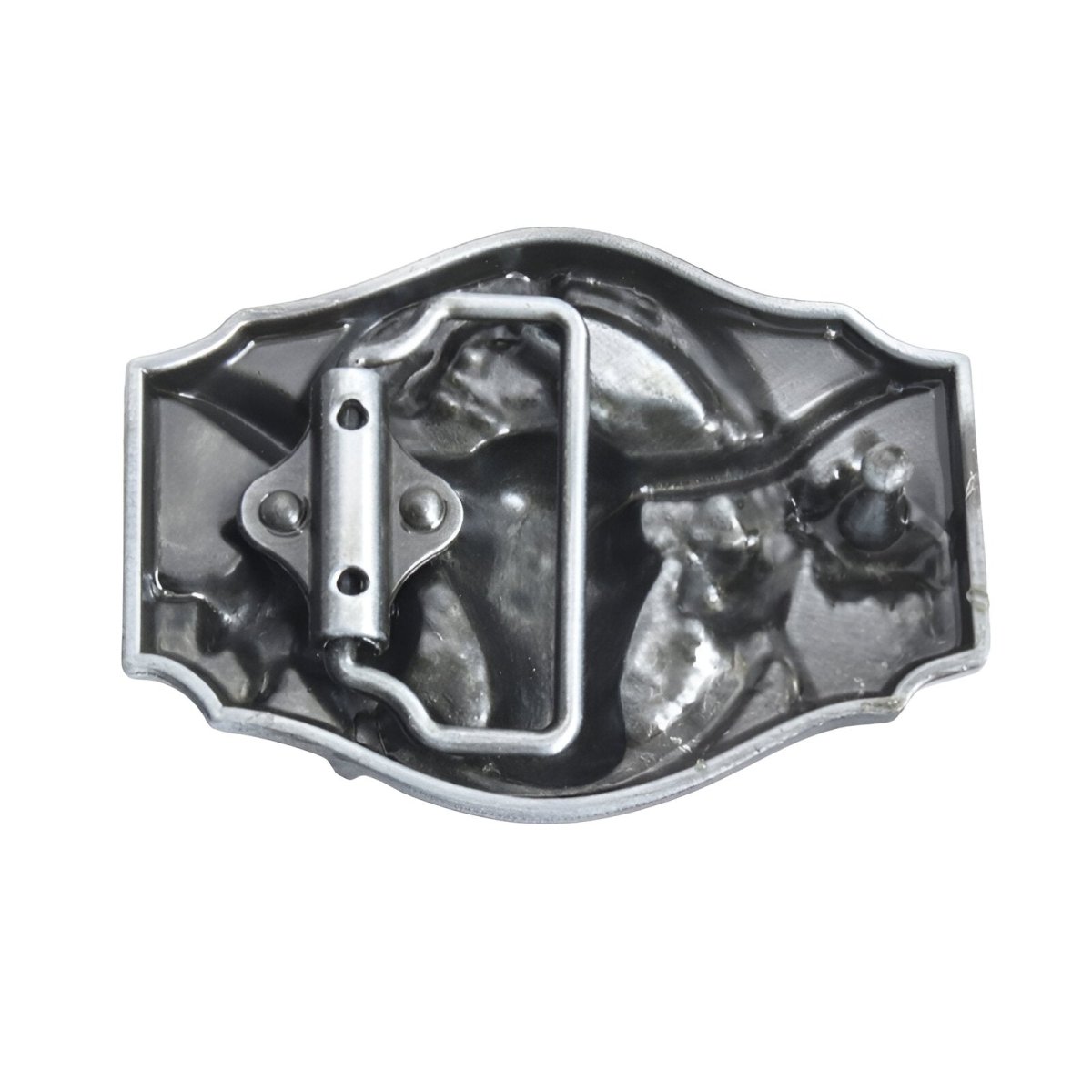 This belt buckle is a true metal narrative scene, featuring a striking bull's head surrounded by a cowboy and bulls, reminiscent of the epic duels of the Wild West. The vivid details add visual vibrancy and depth, capturing the spirit of conquest and adventure. It's a piece that is sure to tell a story, a three-dimensional tribute to the life of ranches and rodeos.
