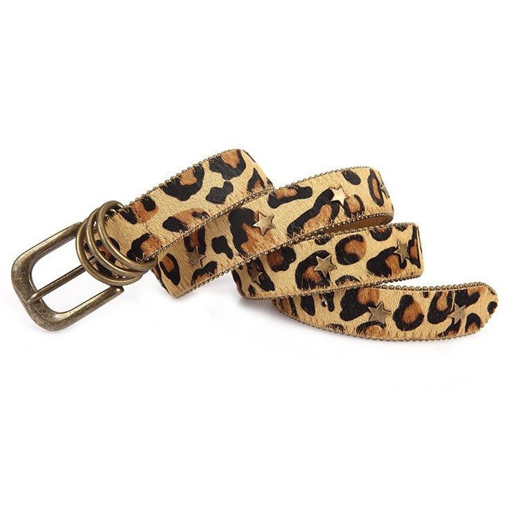 Embrace boldness with this accessory that sets the current trends. Every detail is crafted to enhance your wardrobe with undeniable character. From its star-shaped rivets to its unique loop, this belt is the centrepiece that turns the ordinary into the extraordinary. Beyond its primary function, it becomes an expression of a confident personality, ready to capture attention and leave a mark of distinct style. Flirt with the exceptional by incorporating this belt into your most daring outfits and cultivate a look that is uniquely yours.