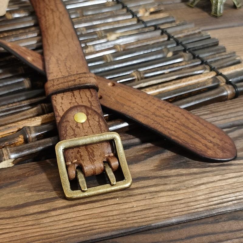 Wear the Razisnei model with confidence and sophistication, allowing your style to speak volumes. This belt represents a blend of timeless charm of aged leather and the modernity of contemporary fashion. Do not miss out on this unique piece.