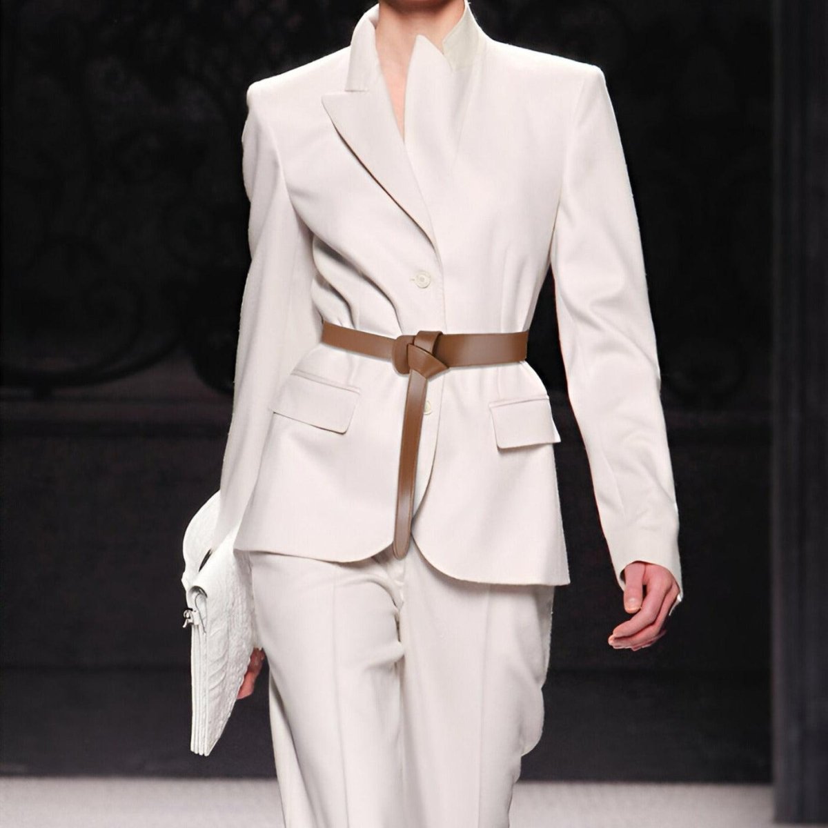 Whether paired with a dress, jumpsuit, coat, sweater, cardigan, or skirt, this knotted belt is sure to add a touch of elegance to your ensemble. Available in a variety of colours from deep coffee to bright red, along with classic black, brown, and camel, it offers a wide range of options to complement your wardrobe.